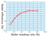 This graph shows the average values summarized from the data collected so far. Boiler efficiency greatly depends on the actual loading and the way of operating a boiler. These useful data accumulate from the 15,000 case studies. |