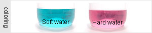 Coloring (soft water: cyan ~ blue, hard water: blue purple ~ red) |