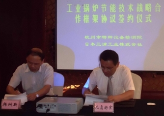 7月26日下午,三浦工业株式会社与杭州特种设备检测院(以下简称“杭州特检院”)在杭州举行了“杭州市工业锅炉安全与节能技术战略合作框架协议”签约仪式。杭州特检院韩树新院长与三浦工业株式会社执行董事兼三浦工业设备(苏州)有限公司董事长儿岛好宏先生代表双方在合作协议上签字。杭州市质监局特监处王瑞欣处长参加了此次签约仪式并对今后双方合作方向做了重要指示。