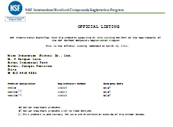 三浦工业设备(苏州)有限公司取得NSF(美国国家卫生基金会)认证