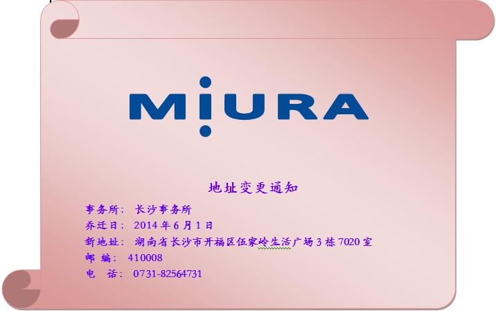 三浦工业长沙事务所搬迁通知