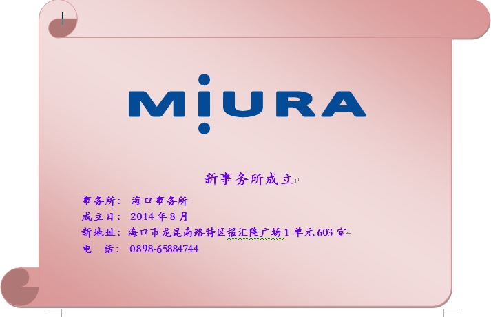 三浦工业海口事务所成立