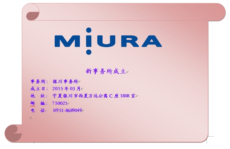 三浦工业银川事务所成立