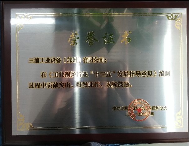 热烈庆祝三浦工业设备(苏州)有限公司凭借在《工业锅炉行业“十三五”发展指导意见》中的突出贡献荣获新誉!