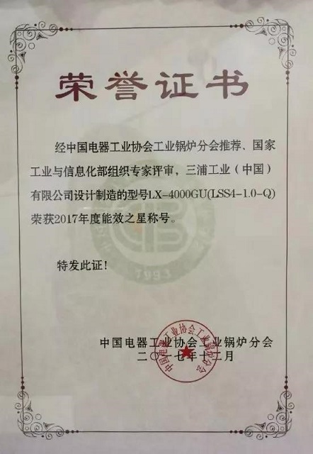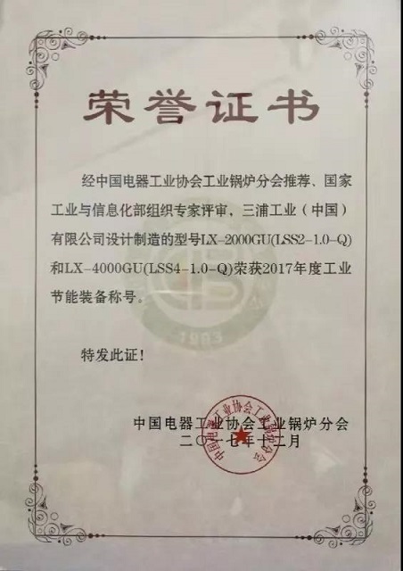 LX系列锅炉作为三浦的明星产品,锅炉效率高达99%以上,NOx排放浓度可达30ppm以下,被国家工信部评审为节能产品及能效之星。