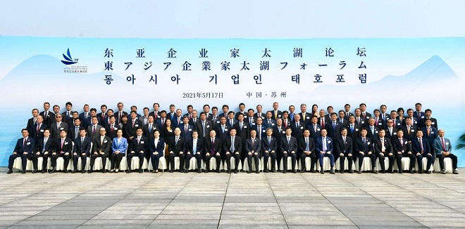 2021年5月17日,以“畅通东亚产业循环,携手合作共赢发展”为主题的东亚企业家太湖论坛在苏州举行。省委书记娄勤俭致辞,省委副书记、省长吴政隆作主旨演讲。商务部副部长张向晨,中国贸促会副会长、中国国际商会副会长卢鹏起出席并讲话。