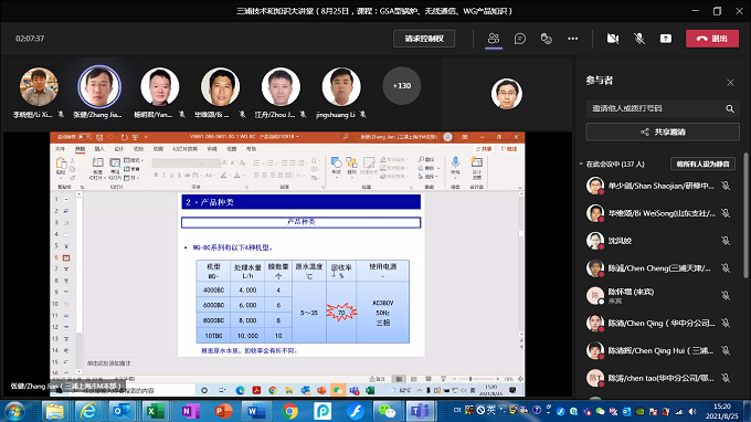 客户的支持和信赖是三浦前进的动力,不断提升营业、服务人员的专业水准和服务质量是对客户最好的回馈。2021年8月,研修中心以在线授课的形式高密度地组织了三浦技术和知识大讲堂活动, 2021年8月18日和8月25日的两次大讲堂讲师分别由日方林隆弘副总经理和营业服务本部张健副本部长担任,他们就热能知识现场运用实例和GSA型锅炉、无线通信、WG纯水装置等内容进行了授课,全国各分公司参会人数达400余人。两位讲师的真知灼见和精彩详尽的讲解可谓句句干货,让参会的人员都获益匪浅。