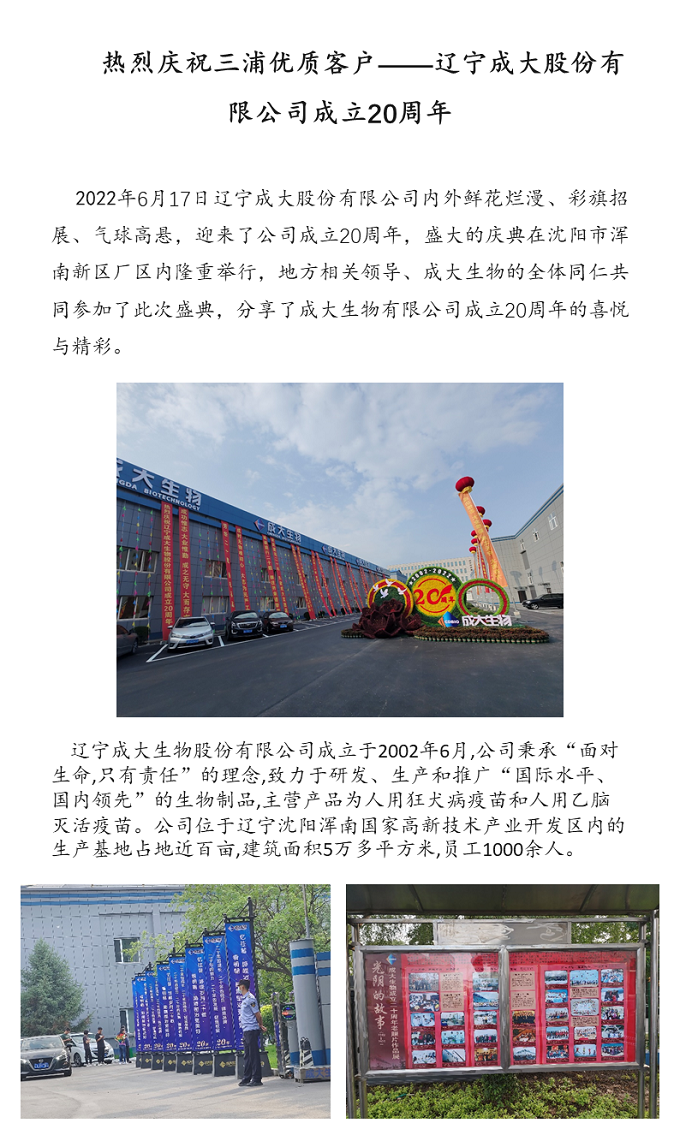 热烈庆祝三浦优质客户——辽宁成大股份有限公司成立20周年