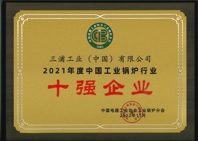 热烈祝贺三浦·中国获得“2021年度中国工业锅炉行业-十强企业”(此奖项为每年的第二年底颁发)