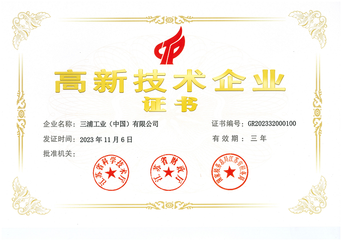 三浦工业(中国)再次取得江苏省高新技术企业称号