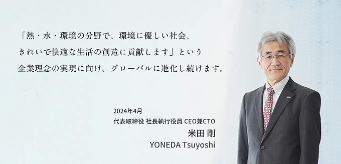 先行き不透明な時代ではありますが、広く社内外の声に耳を傾けた上でしっかりと考え、思い切って行動する「熟慮断行」の精神で、「熱・水・環境の分野で、環境に優しい社会、きれいで快適な生活の創造に貢献します」という企業理念の実現に向け邁進してまいります。