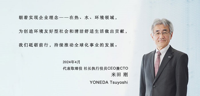 在这个前景不明朗的时代,我们需要在广泛倾听公司内外声音的基础上,深思熟虑,果断行动。秉持”熟虑断行“的精神,努力实现企业理念——在热、水、环境领域,为创造环境友好型社会和清洁舒适生活做出贡献,不断向前迈进。