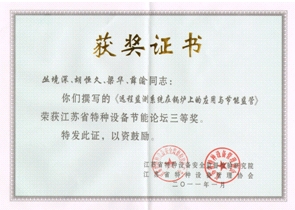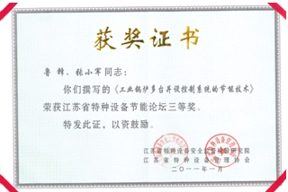 由我公司技术部鲁峰、张小军联合撰写的论文《工业锅炉多台并设控制系统的节能技术》荣获江苏省特种设备节能论坛优秀论文三等奖,并入选优秀论文集。我司胡恒久博士与南京市锅炉压力容器检验研究院合作撰写的论文《远程监测系统在锅炉上的应用与节能监管》亦同时荣获论坛优秀论文三等奖。