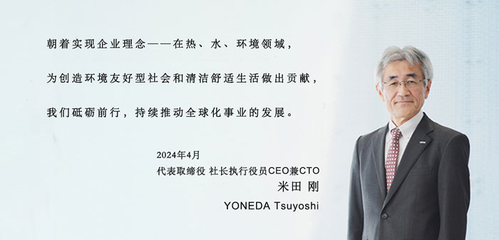 在这个前景不明朗的时代,我们需要在广泛倾听公司内外声音的基础上,深思熟虑,果断行动。秉持”熟虑断行“的精神,努力实现企业理念——在热、水、环境领域,为创造环境友好型社会和清洁舒适生活做出贡献,不断向前迈进。